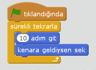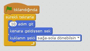 Pandamızın sürekli hareket etmesi için sürekli tekrarla bloğunun kullanıldığından bahsedilir. Ancak bu kod çalıştırıldığında pandanın ekranın sonuna geldiğinde ekrandan kaybolduğunun ya da en sonda durduğundan bahsedilir. Pandamızın ekranın sağ kenarına geldiğinde geri dönmesi için neler yapabileceğimiz kursiyerlere sorulur.
